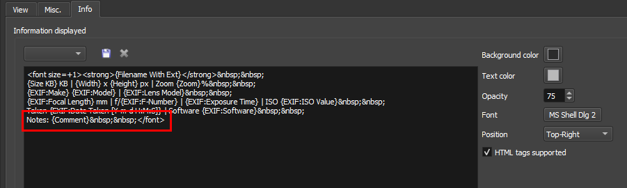 EXIF - Camera > XP Comment: [ {EXIF:XPComment} ]