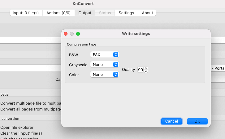The 'Fax' compression option is taken to be CCITTG4 rather than CCITTG3, which term should be used consistenly within XnView MP.