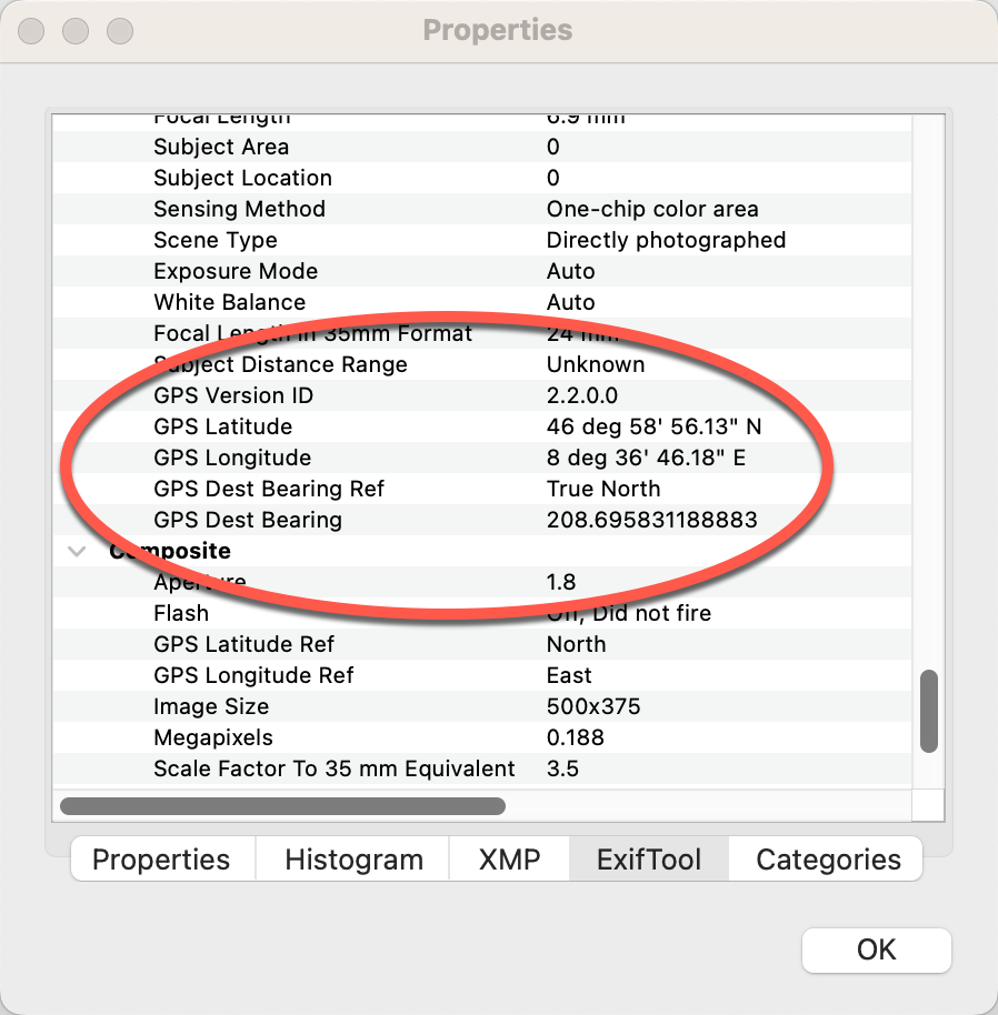 Other viewers, e.g. Apples Preview.app, are able to properly show the GPS location of the same image.