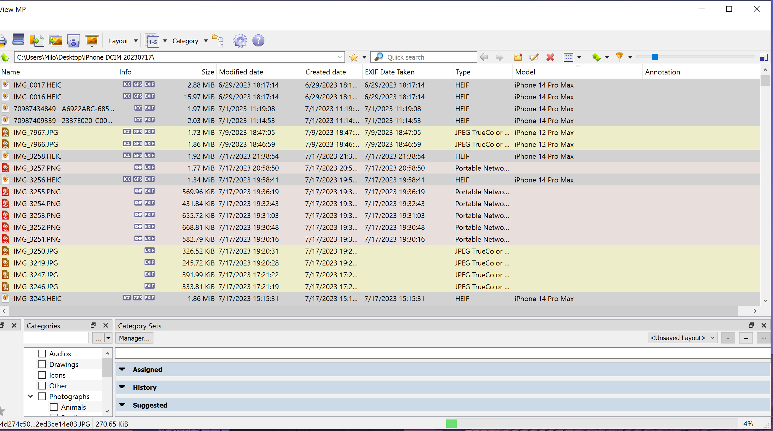 With a folder that only has HEIC files, the sorting on 1.5.0 is so slow to the extent that it almost processes one file at a time, as the progress bar is 0% for 10 seconds and the Model is showing one line after another.