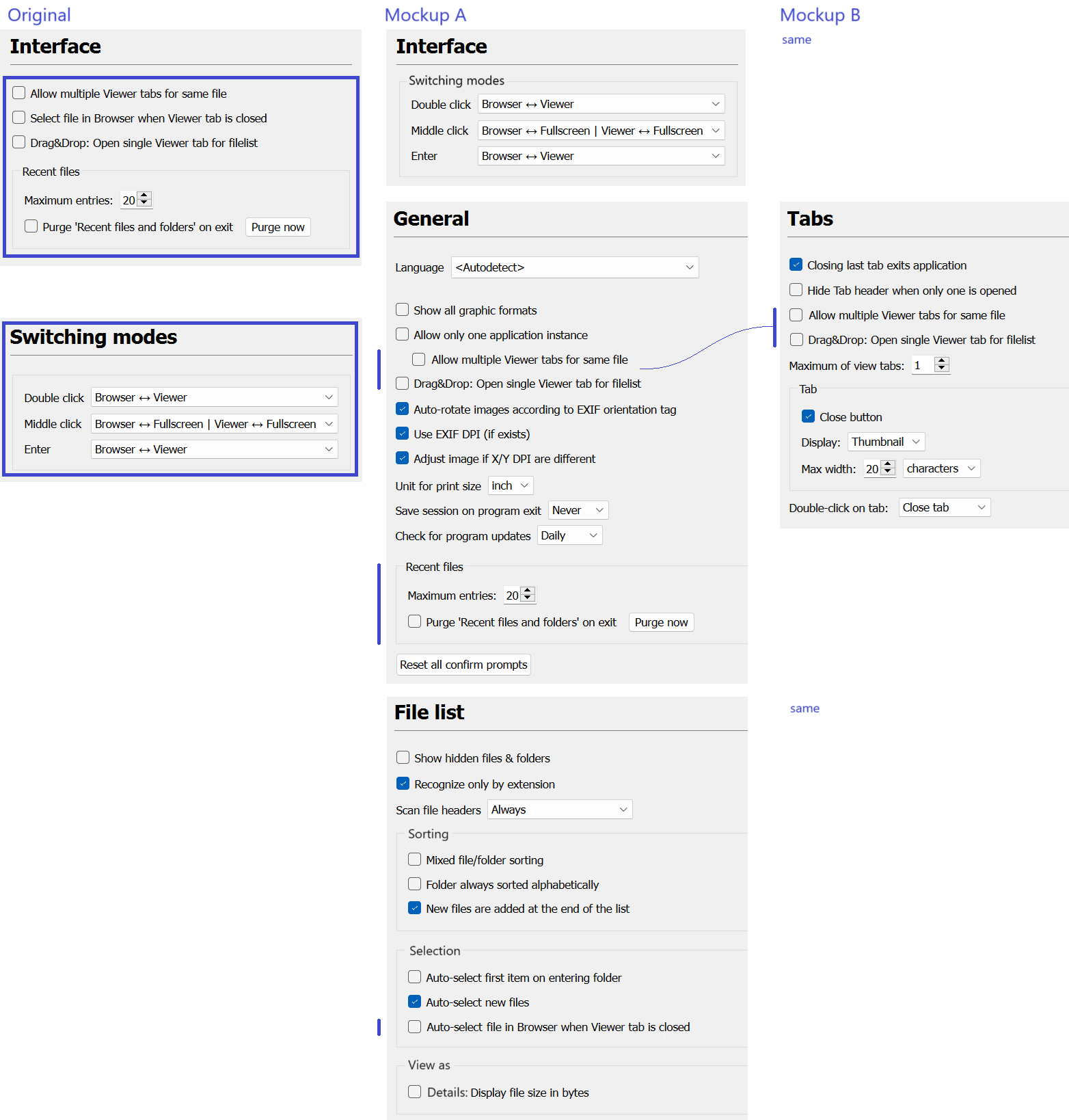 - move all settings from the Interface general tab to other, more suitable, tabs