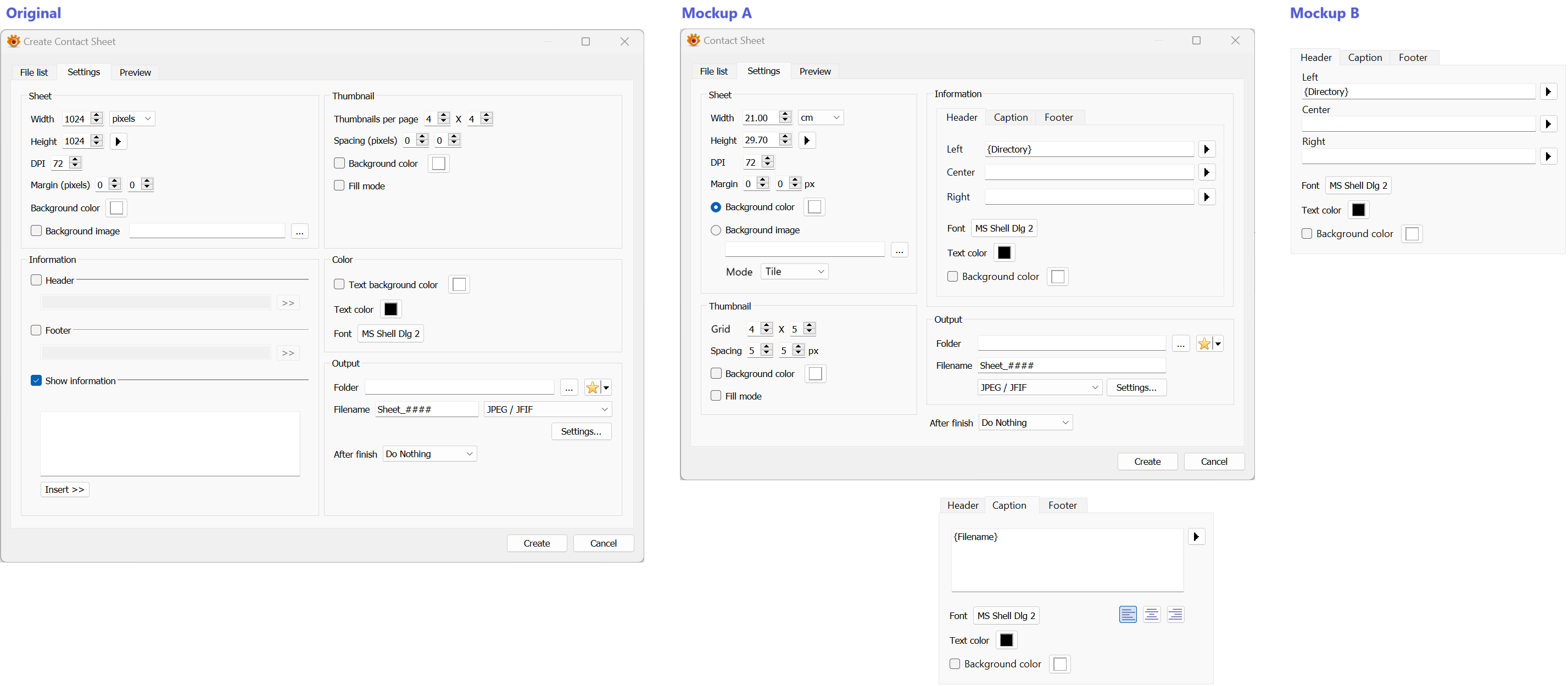 unify settings for all dialogs (print, slideshow, contact sheet, etc.)