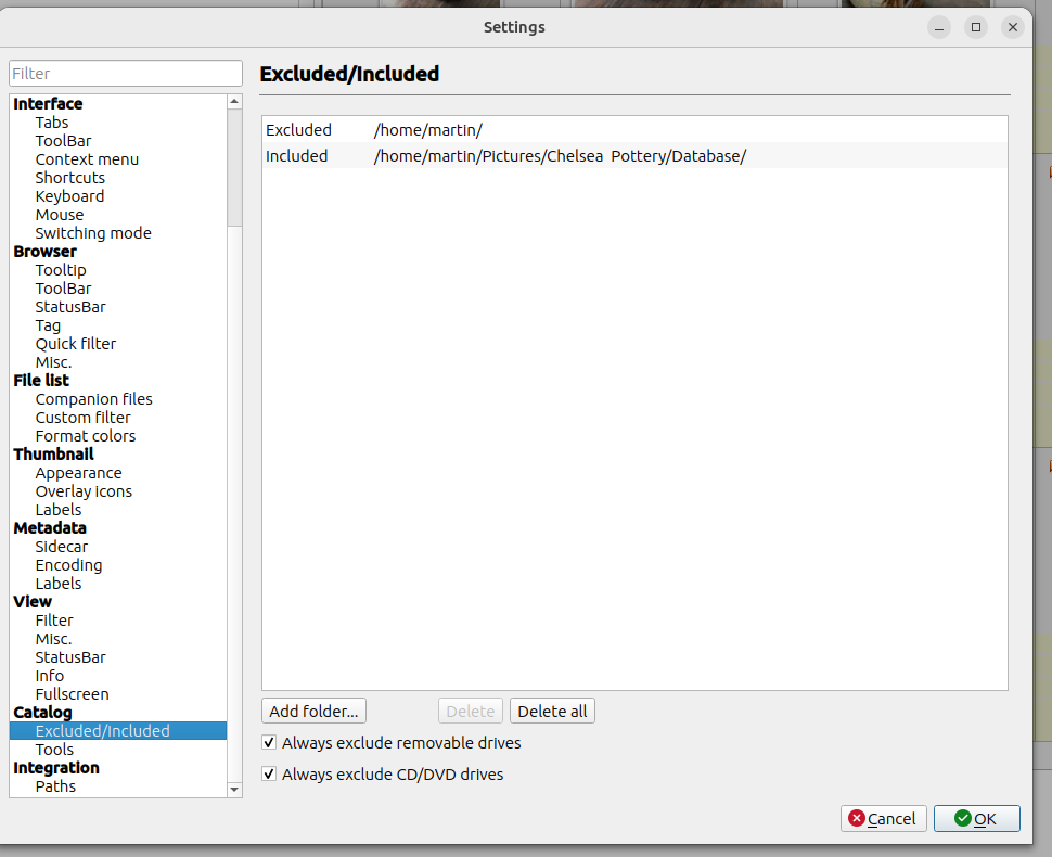 Catalog/'Excluded/Included' and Catalog/'Base path of your pictures' sound hopeful - can they be used to achieve this, even if I subsequently browse more widely than my current project ?