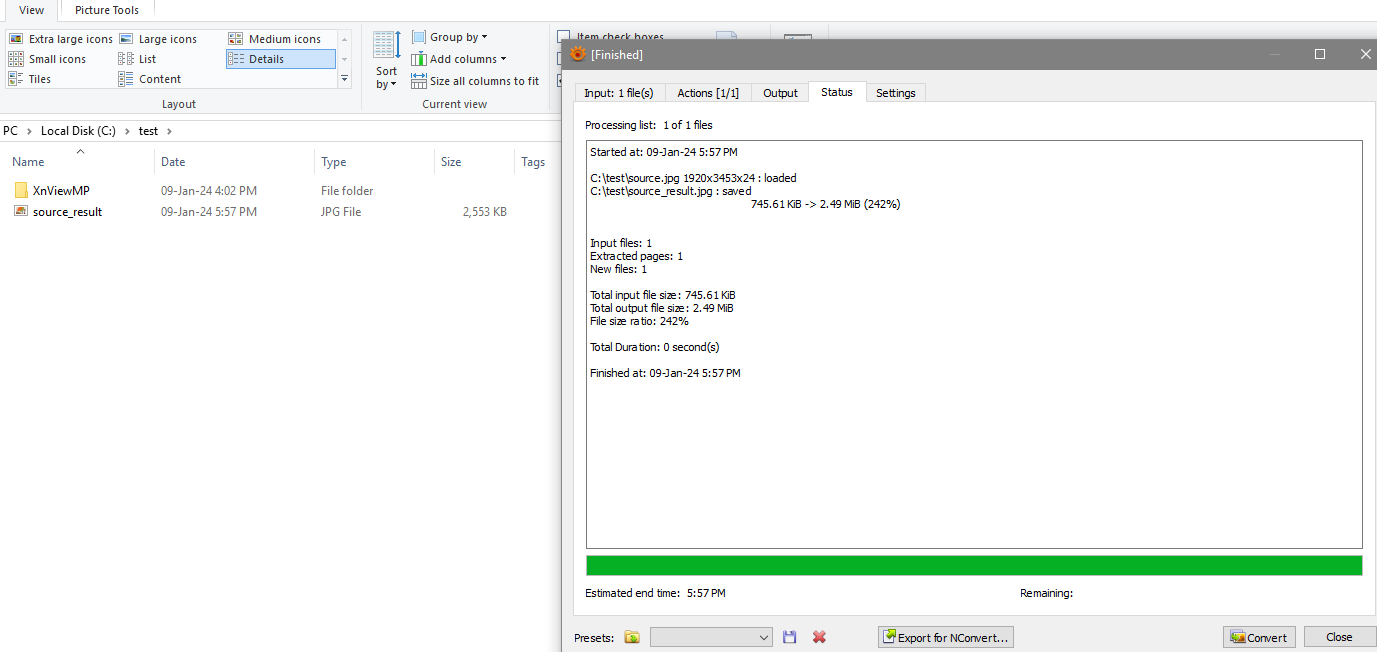 Tested on both XnConvert 1.99 x64 and XnViewMP 1.6.3 x64