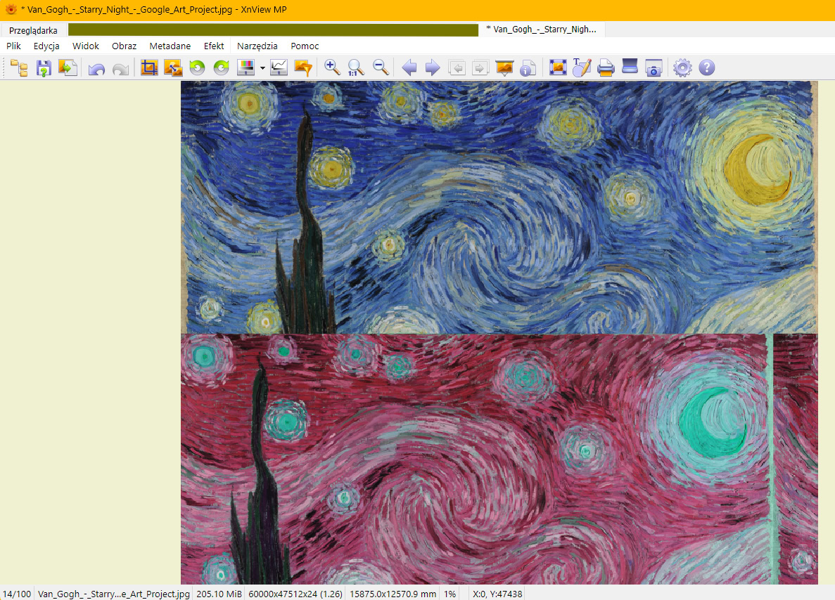 There is big image Van Gogh from Wikipedia https://upload.wikimedia.org/wikipedia/ ... roject.jpg (30,000 × 23,756 / 205.1 MB).