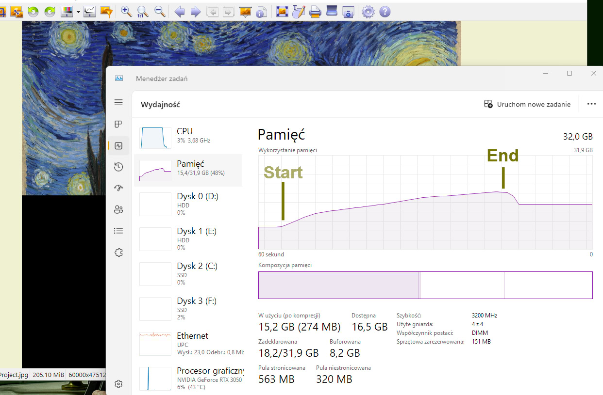 ps: memory consumption same as Kadet's - never come to 100% (I have 32Gb as well)