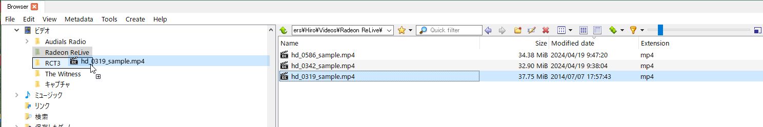you move files (with a video file) from thumbnail view into thumbnail view? into folder view? with move dialog?