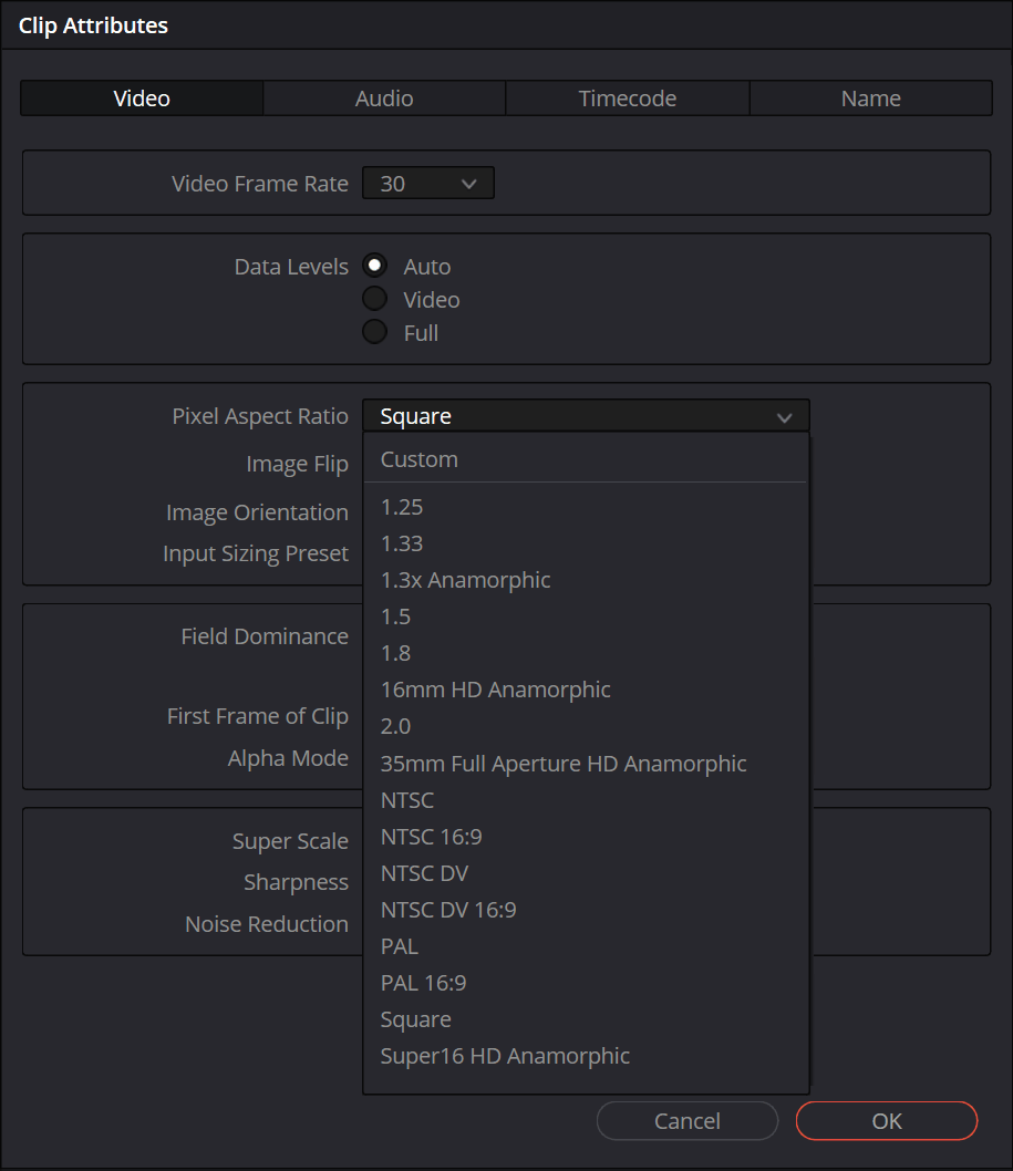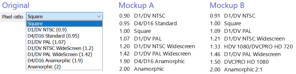 • update ratio decimal values to match Adobe apps / Davinci Resolve