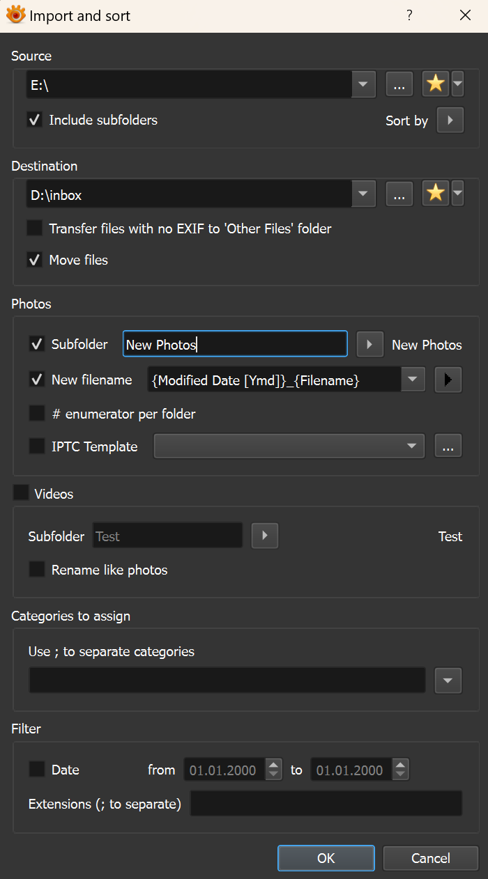 Expected: the videos should go to Destination\Photos subfolder specified at step 1.