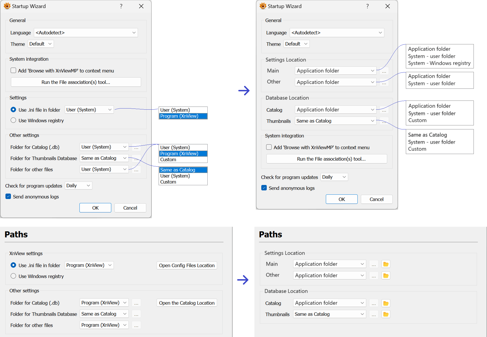 Startup Wizard / Settings - integration - paths