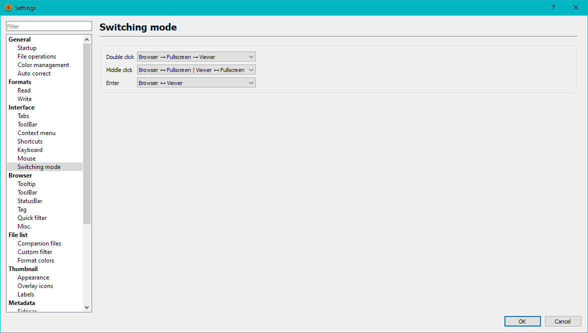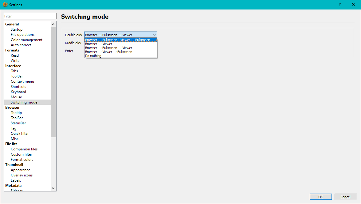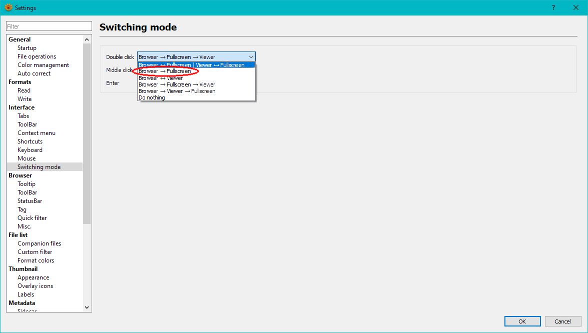 I have been writing about the problem on many forums for a long time and now I have come here. The problem is in the switching mode. In all three types: Double-click, Middle mouse button, Enter. Nowhere is there the MOST important switching mode available in ALL such programs. "Browser - Fullscreen" mode. It is very necessary to switch from "Fullscreen" to full screen mode IMMEDIATELY to "Browser" mode