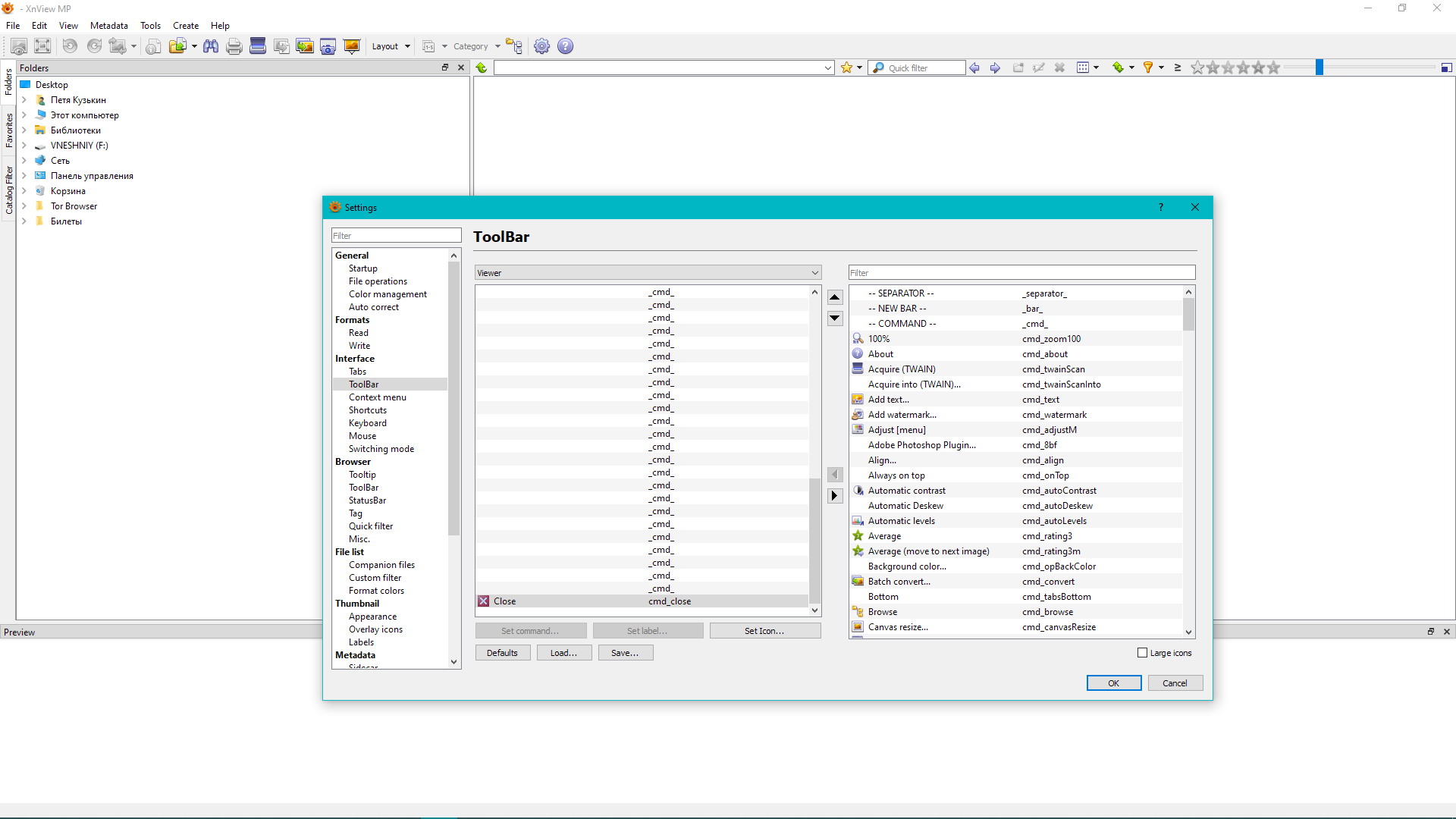 By the way, it's funny that if you poked into thumbnail mode and then back into full-screen viewing mode, the menu can't be configured AT ALL. Neither add a button in a very difficult way, nor anything at all. There are no settings in the program with this option at all.