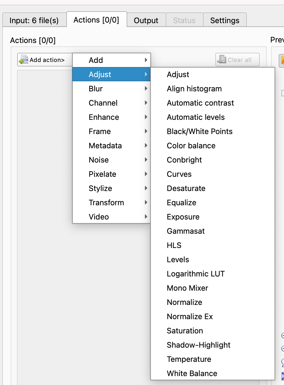Actually, user0, shouldn't it be Add action > Map > Adjust... with the ellipsis?