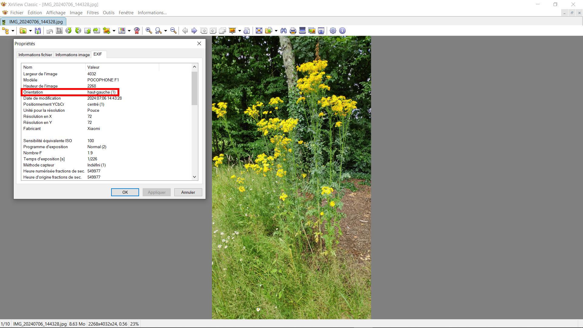 If I open a portrait photo (captured from a camera), the orientation tag displayed is the same as for a landscape photo : Top-Left (1)