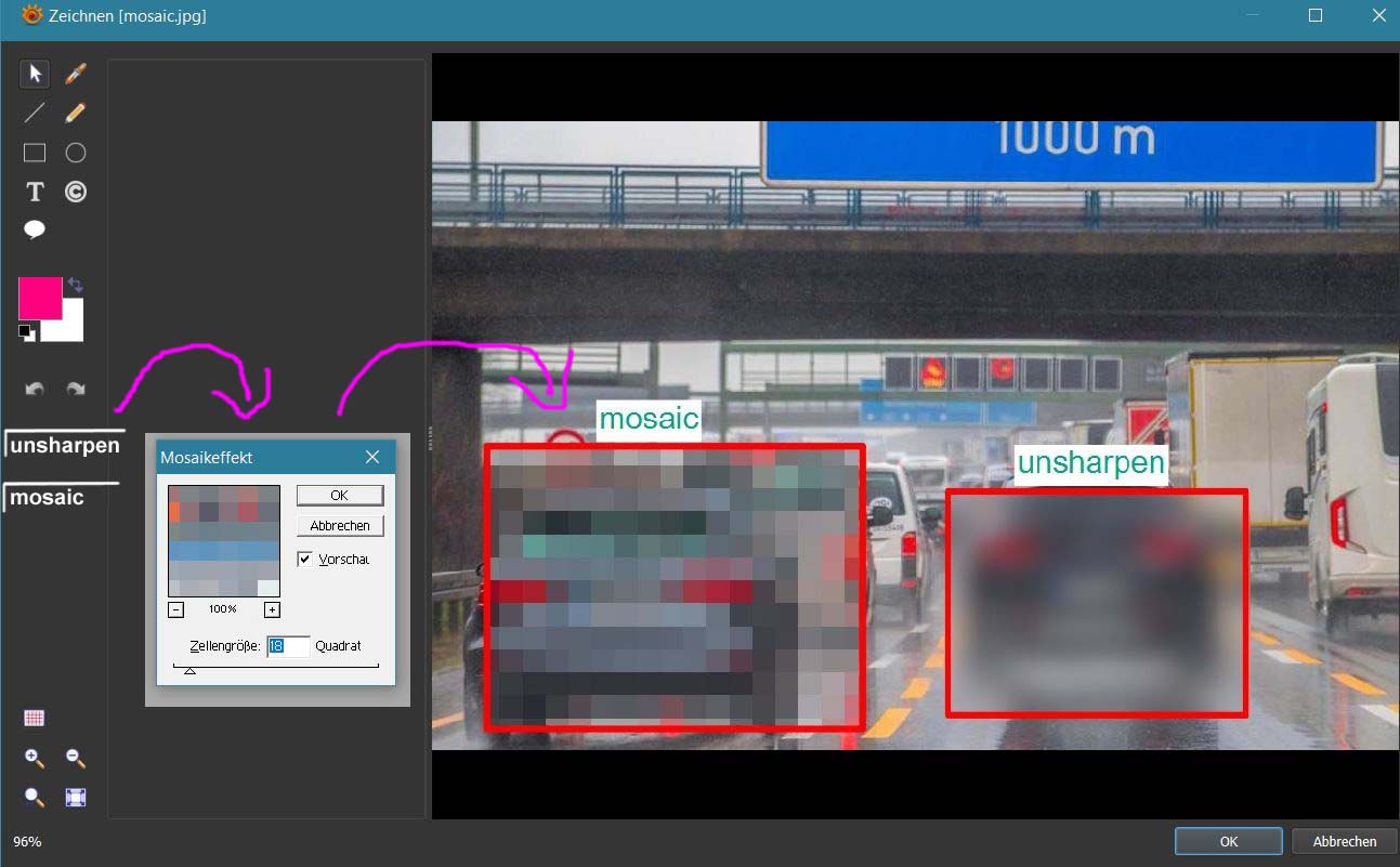 sometimes in pictures it is necessary to make areas unsharpen (e.g. kids, faces, labels, or sensitive informations)