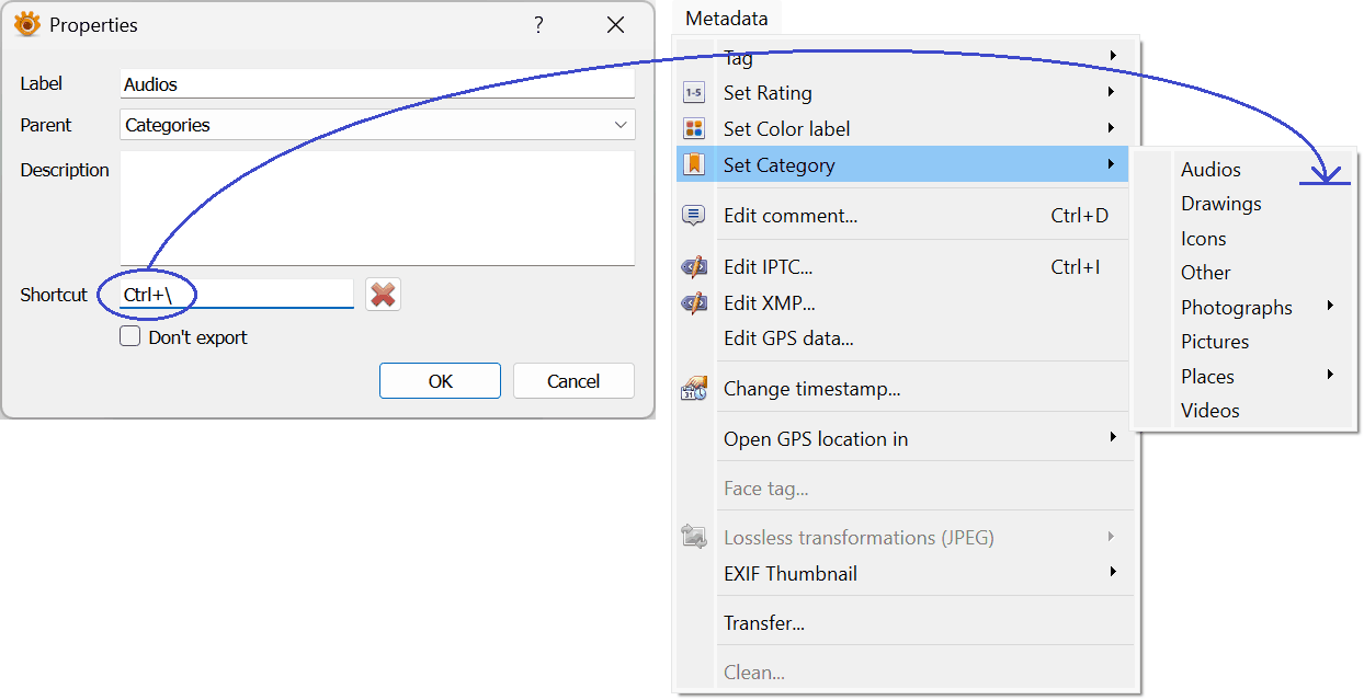 Category shortcuts are not visible in 'Set Category' menu, which is inconvenient